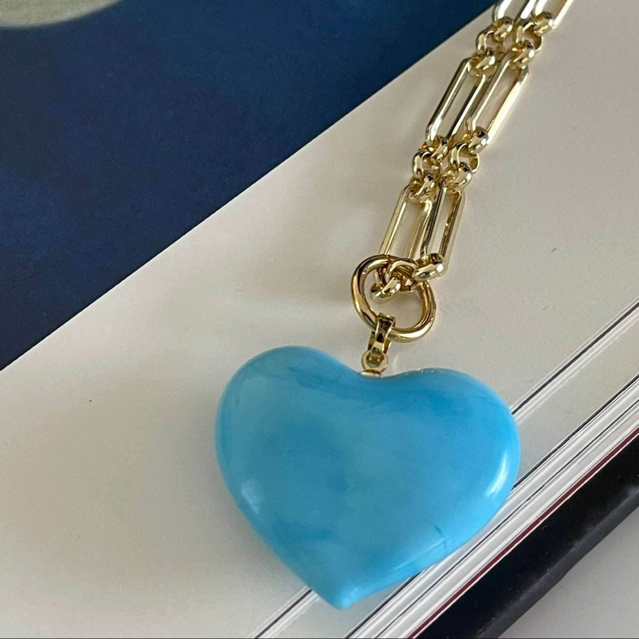 Inspired by the colorful landscapes of the sea, The Bauble Heart Necklace features the hand-made Murano Glass heart pendant in a vibrant turquoise hue. The heart is smooth, and polished with softly rounded edges and an adjustable signature chain that can be clasped at different lengths, offering various options to wear: as a statement, layered with other pieces, or the chain alone since the pendant comes off easily. It's definitely an added bonus as you can also swap the chain and wear the heart on a leather cord allowing to customize your look. A definite must-have this season and beyond you will love for years to come!